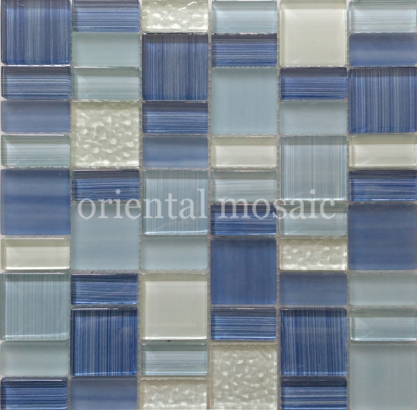 In tone of green, blue and gray, mainly in glass,paired with frosted,hand printing,surface pattern technology. Normal size: 23*23,23*48,23*23+48*48mm. Widely used for small wall and floor area. Swimming pool mosaic can satisfy waterproof and soaking resistance physical characteristics requirements.